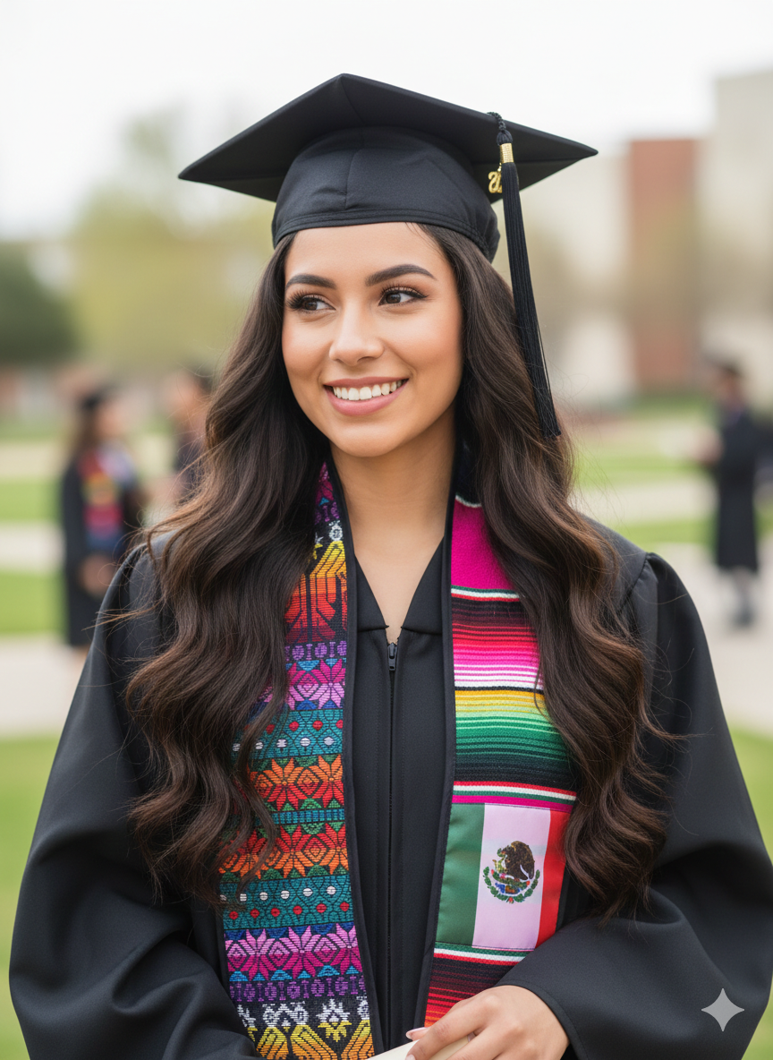Embrace your journey and heritage with this unique graduation sash. Make a statement, celebrate your culture, and shine on your special day.
