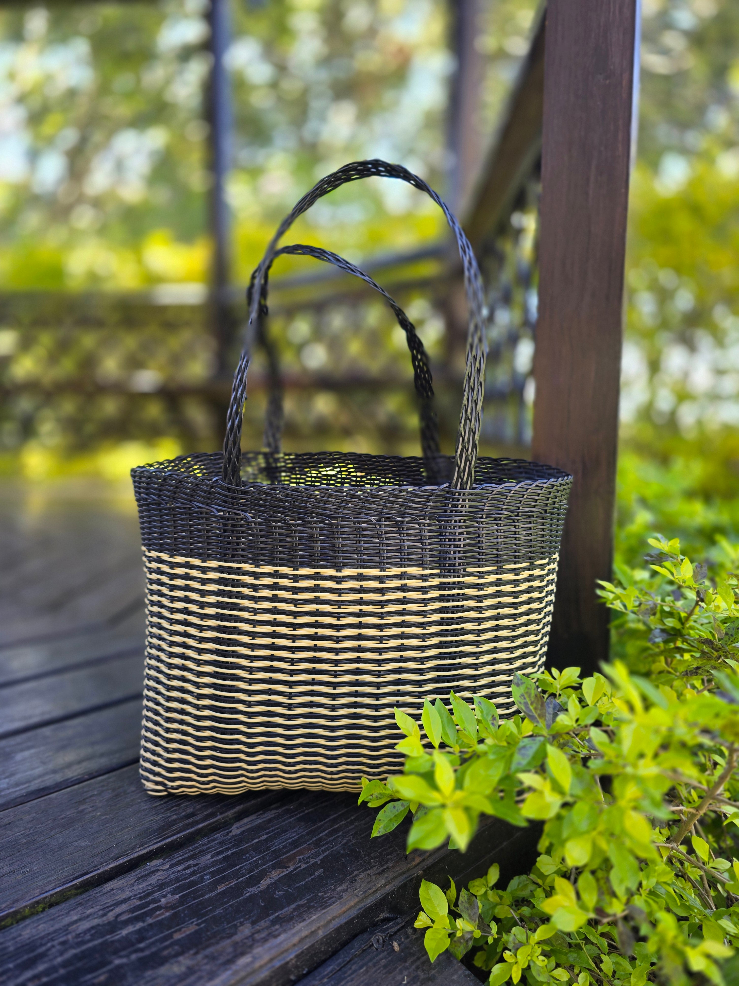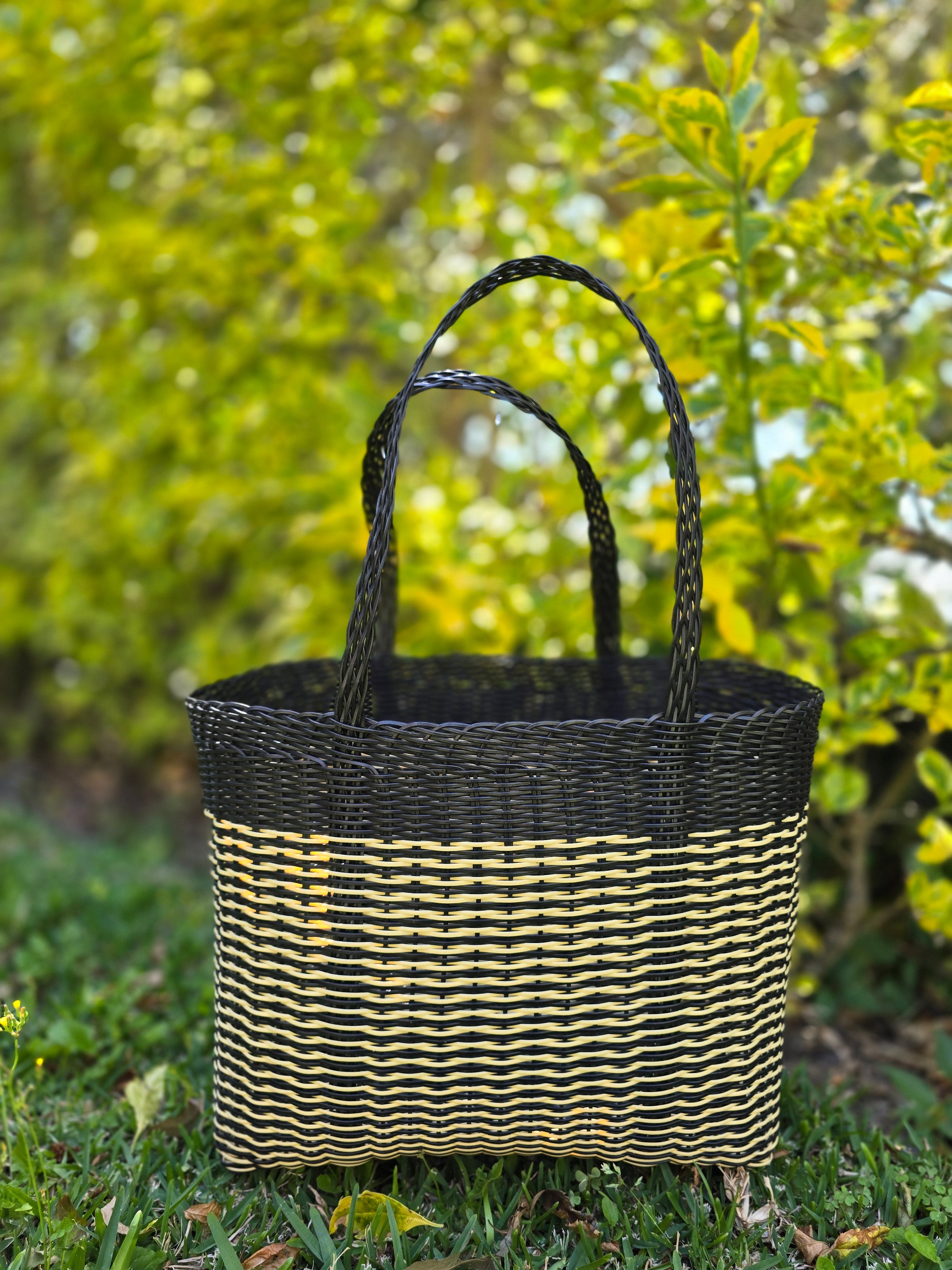 Make a statement with this striking handwoven plastic market tote. Combining a bold black and vibrant yellow pattern with industrial-grade durability, this bag is the ultimate high-performance accessory. It is engineered for those who need a reusable grocery bag that is as tough as it is stylish.