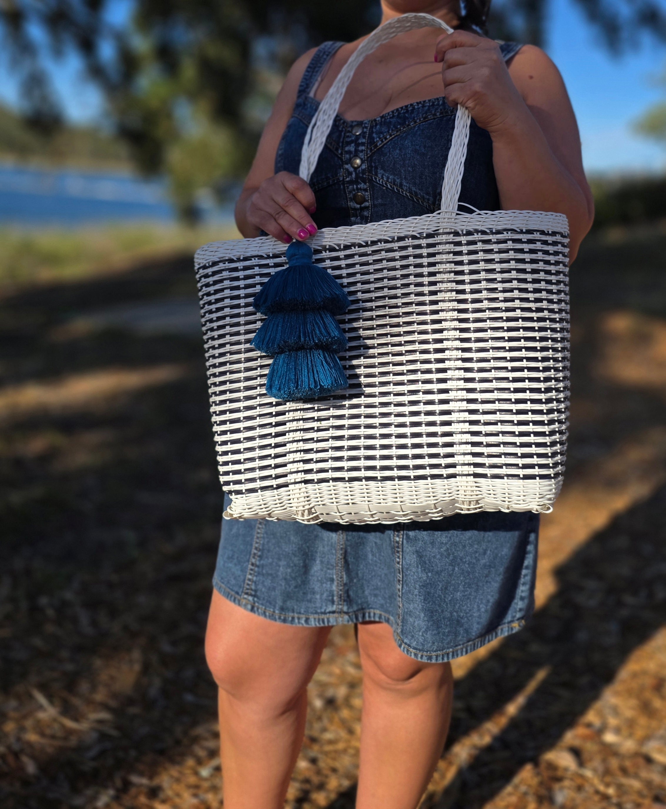 Large Black & White Woven Utility Tote