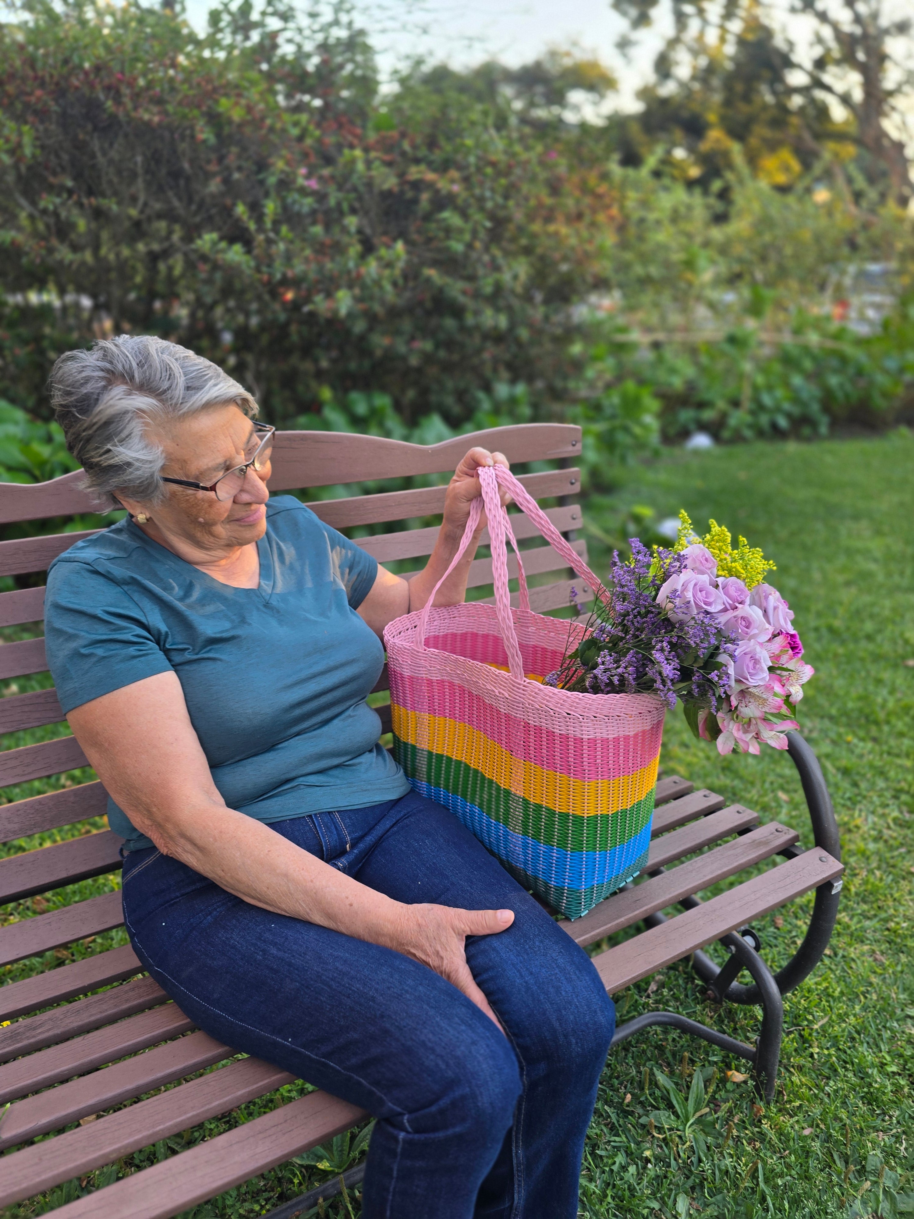 Bring home a piece of Guatemalan tradition with this vibrant, handwoven market bag. Each tote is crafted by skilled artisans in Antigua, Guatemala, using durable recycled plastic strands. It’s a tough, eco-friendly companion that handles everything from heavy farmer's market hauls to sandy beach gear.