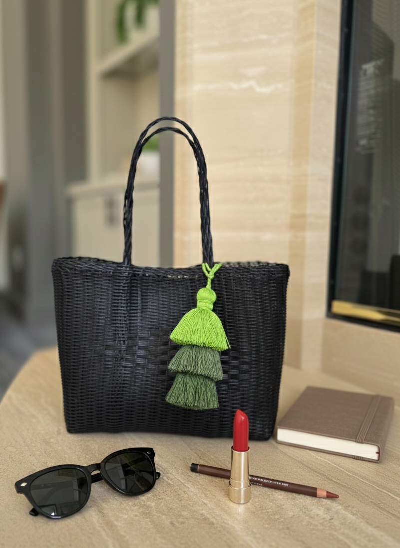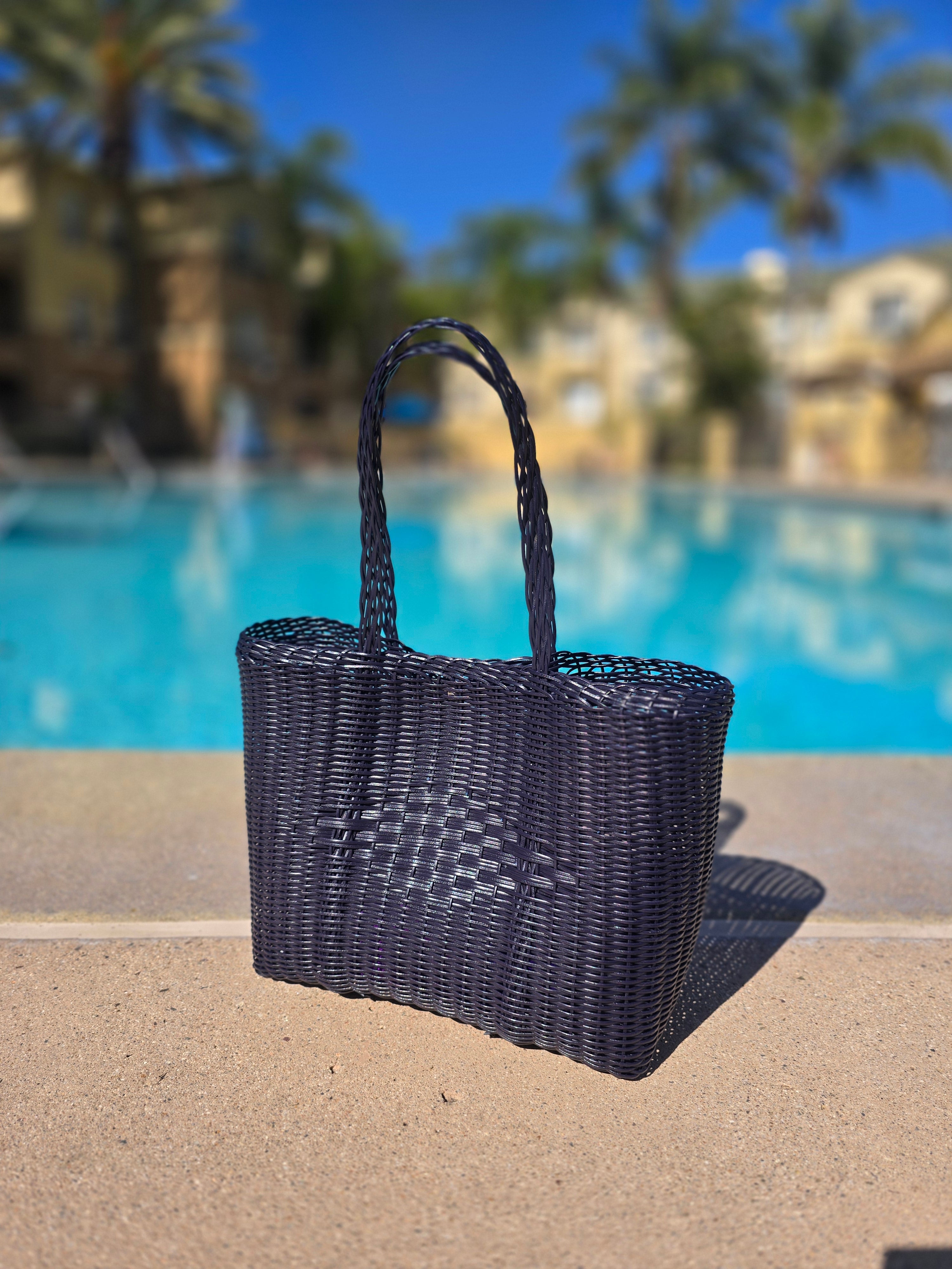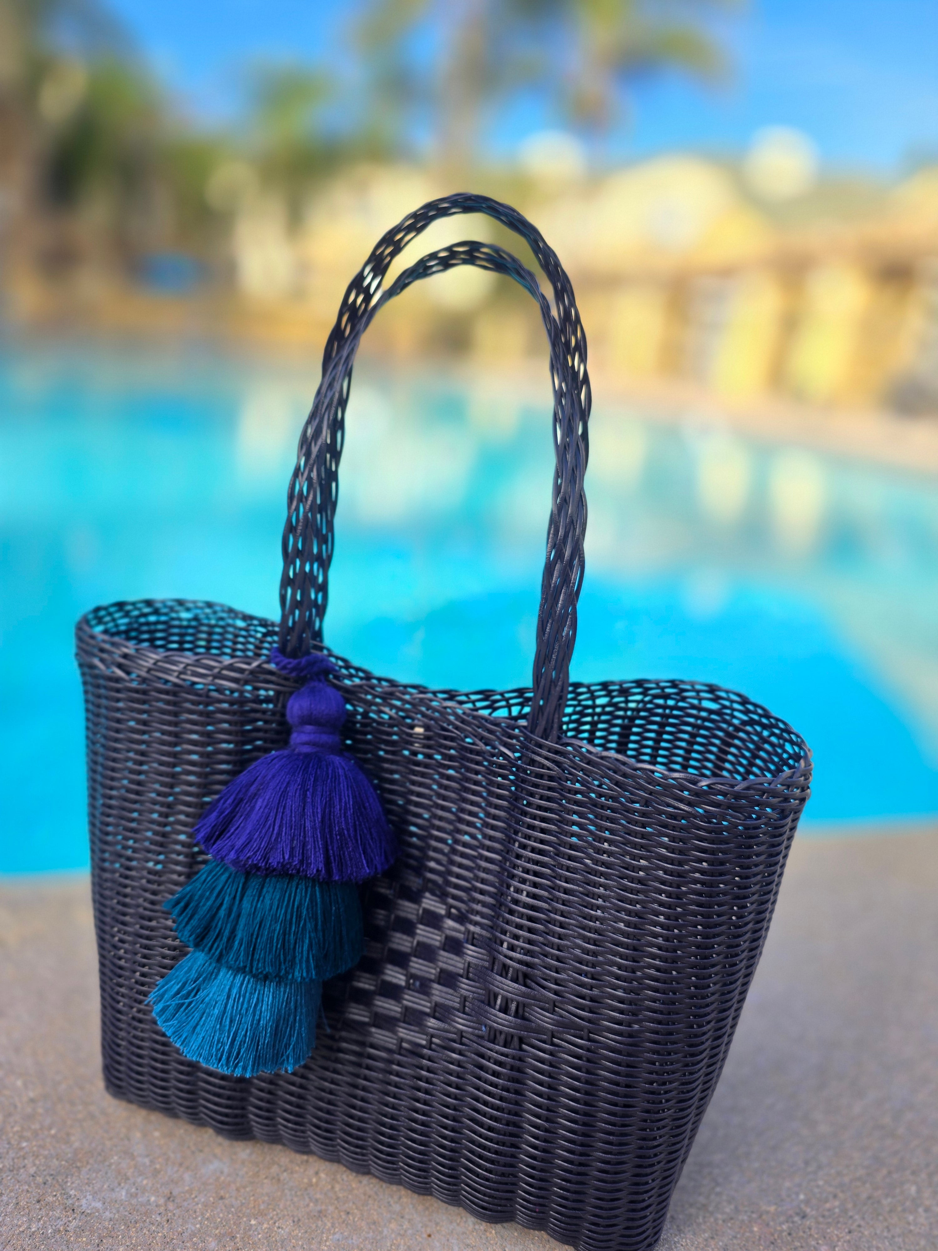 Elevate your everyday carry with this sophisticated Black blue Handwoven Tote. Meticulously crafted from recycled plastic, this versatile bag seamlessly transitions from boardroom to weekend adventures. Its elegant design and refined construction deliver timeless style without compromising on practicality. Spacious enough for daily essentials, durable enough for years of use, and conscientious enough to make a statement about sustainable fashion. A classy accessory that proves elegance and responsibility go hand in hand.