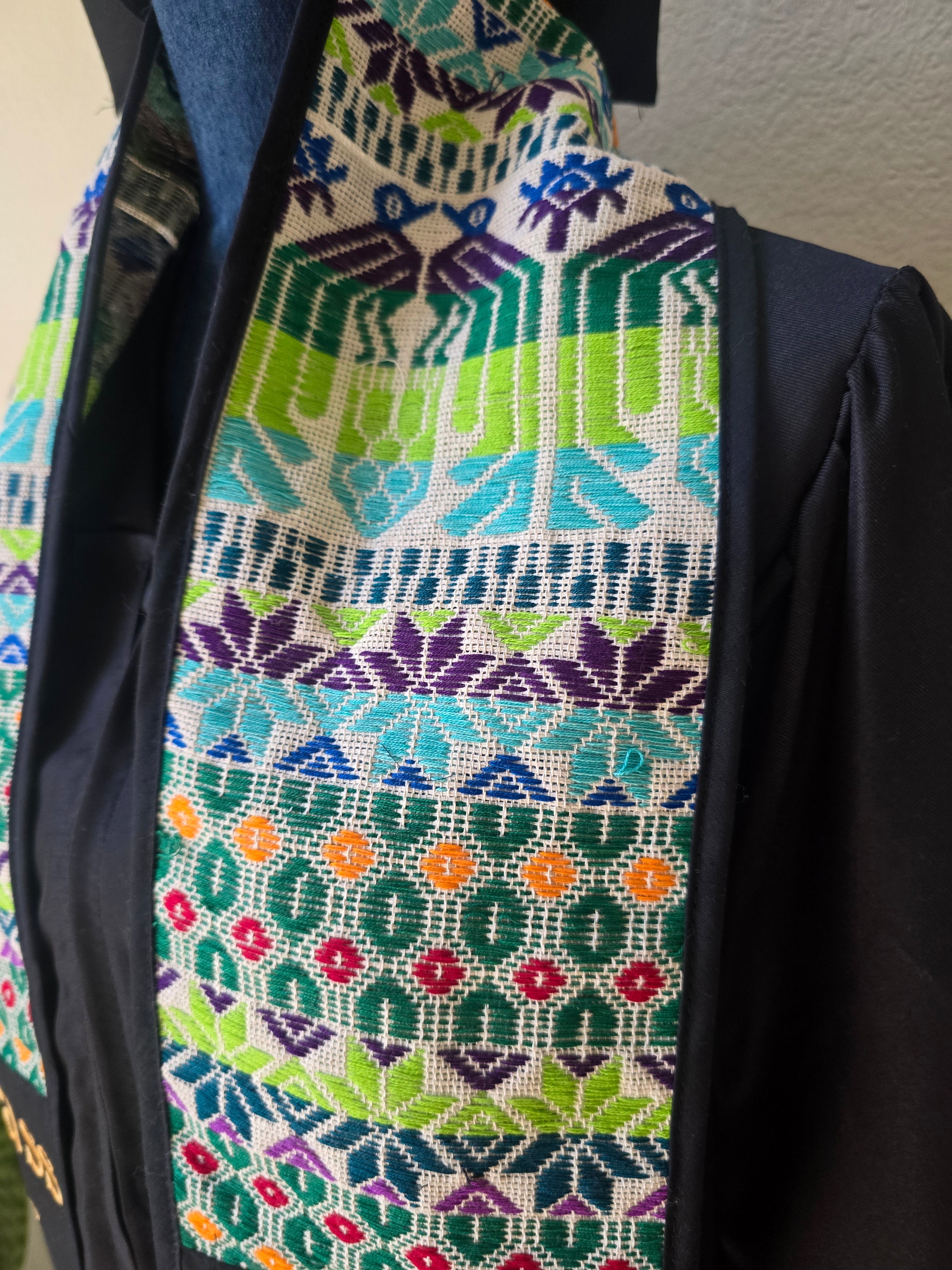Celebrate your academic achievements with pride and elegance wearing this unique, hand-woven graduation scarf. Crafted in Totonicapan, Guatemala, this exquisite piece showcases a beautiful colorful design. Each sash is a testament to the artistry and tradition of Mayan wavers craftsmanship, ensuring you stand out on your special day.