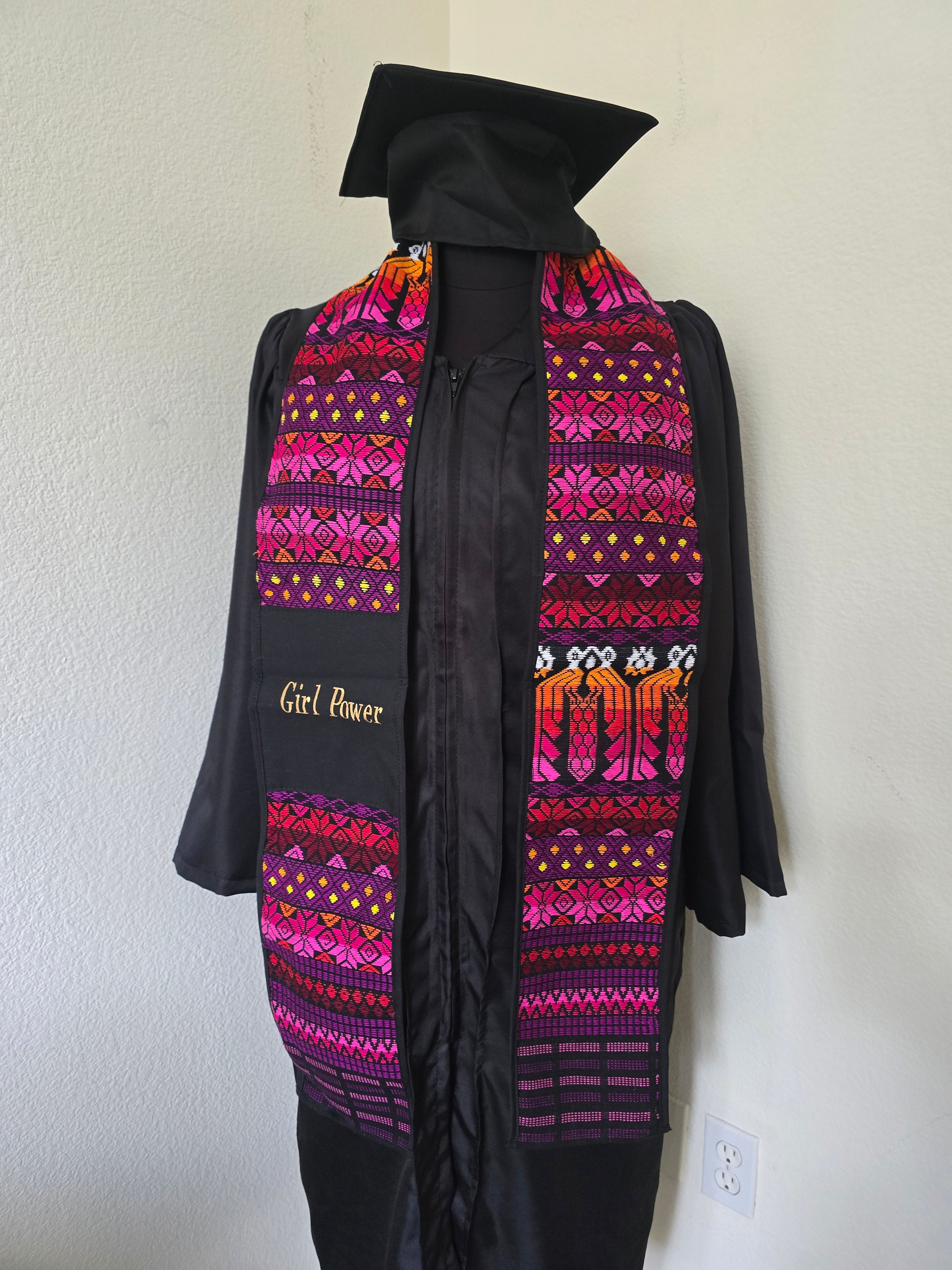Celebrate your hard-earned accomplishment with our shades of pink and orange Girl Power graduation stole. This unique sash is a wonderful opportunity to showcase your heritage and culture. It’s a testament to your dedication and the rich traditions you carry forward.
