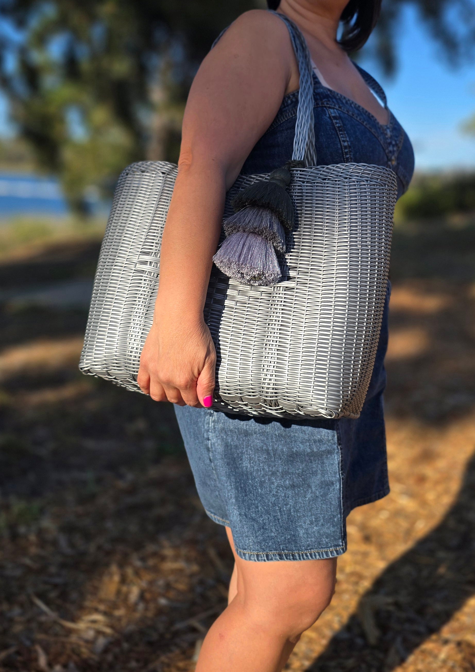 Introducing our exquisite silver handwoven market bag, a testament to artisanal craftsmanship and conscious living. Each piece is meticulously handcrafted using sustainable materials, creating a durable accessory built to withstand daily use while honoring environmental responsibility. The versatile silver tone pairs effortlessly with any aesthetic, transitioning seamlessly from farmers markets to casual outings to refined occasions. Its resilient construction ensures years of reliable service, making it an investment in quality that transcends fleeting trends. An ideal gift for the thoughtful individual who appreciates sustainable fashion, this sophisticated market bag combines timeless elegance with purposeful design, a meaningful choice for those who value both style and planetary stewardship..