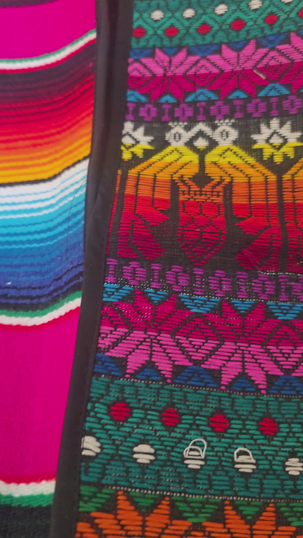 Design: A thoughtful fusion of the classic, multi-colored stripes of a Mexican Sarape paired with the intricate, hand-woven patterns of Guatemalan textiles.