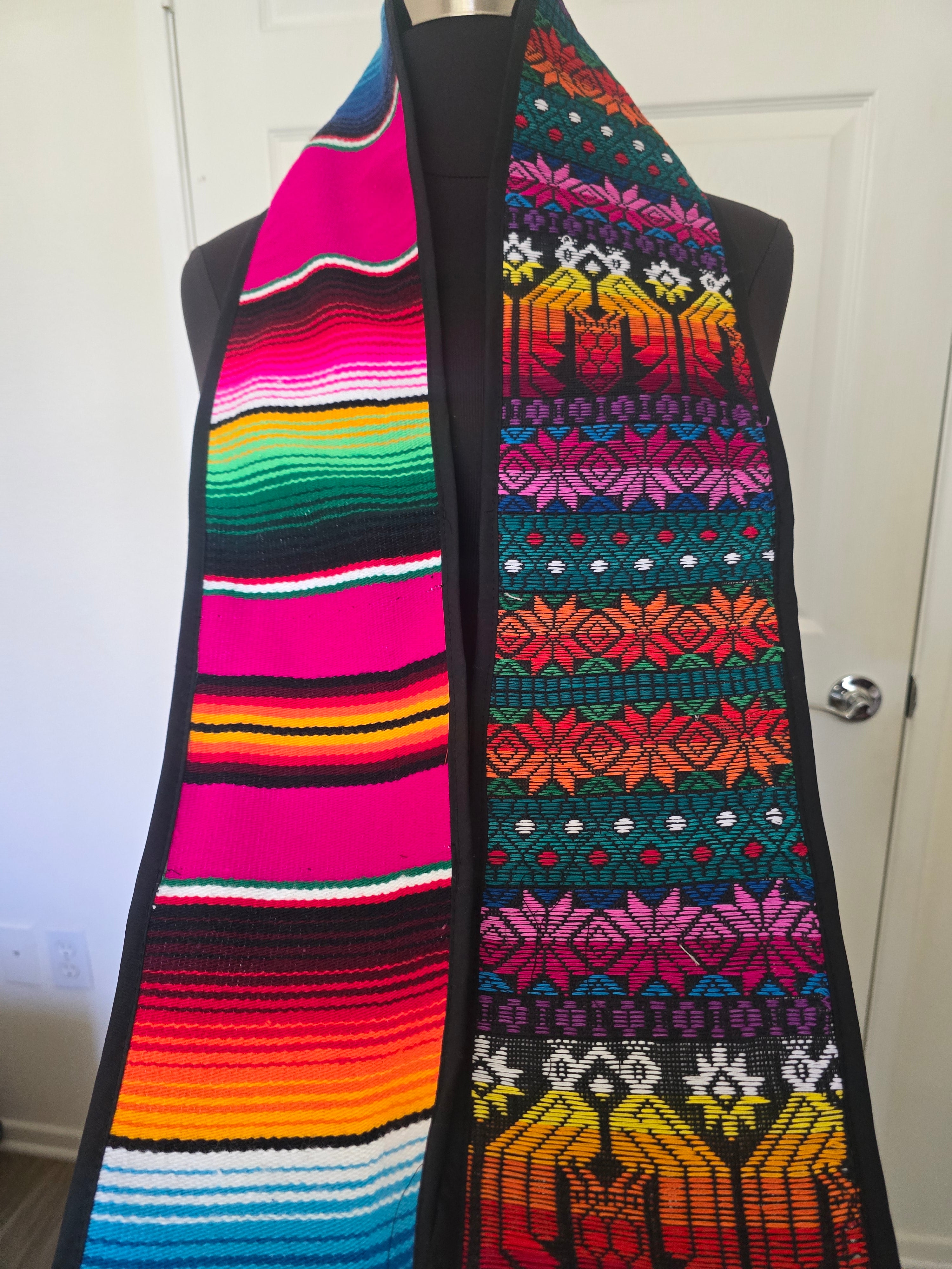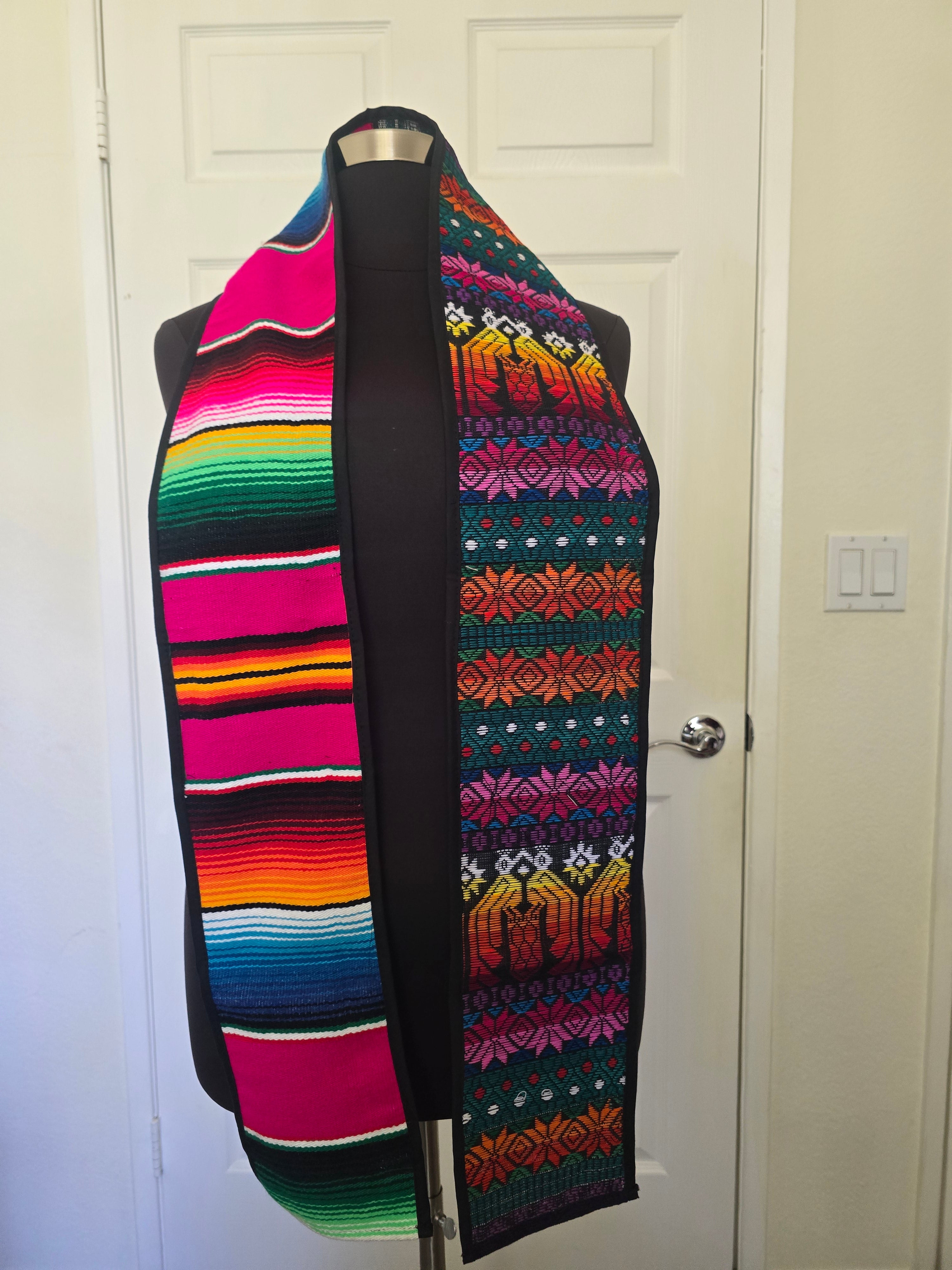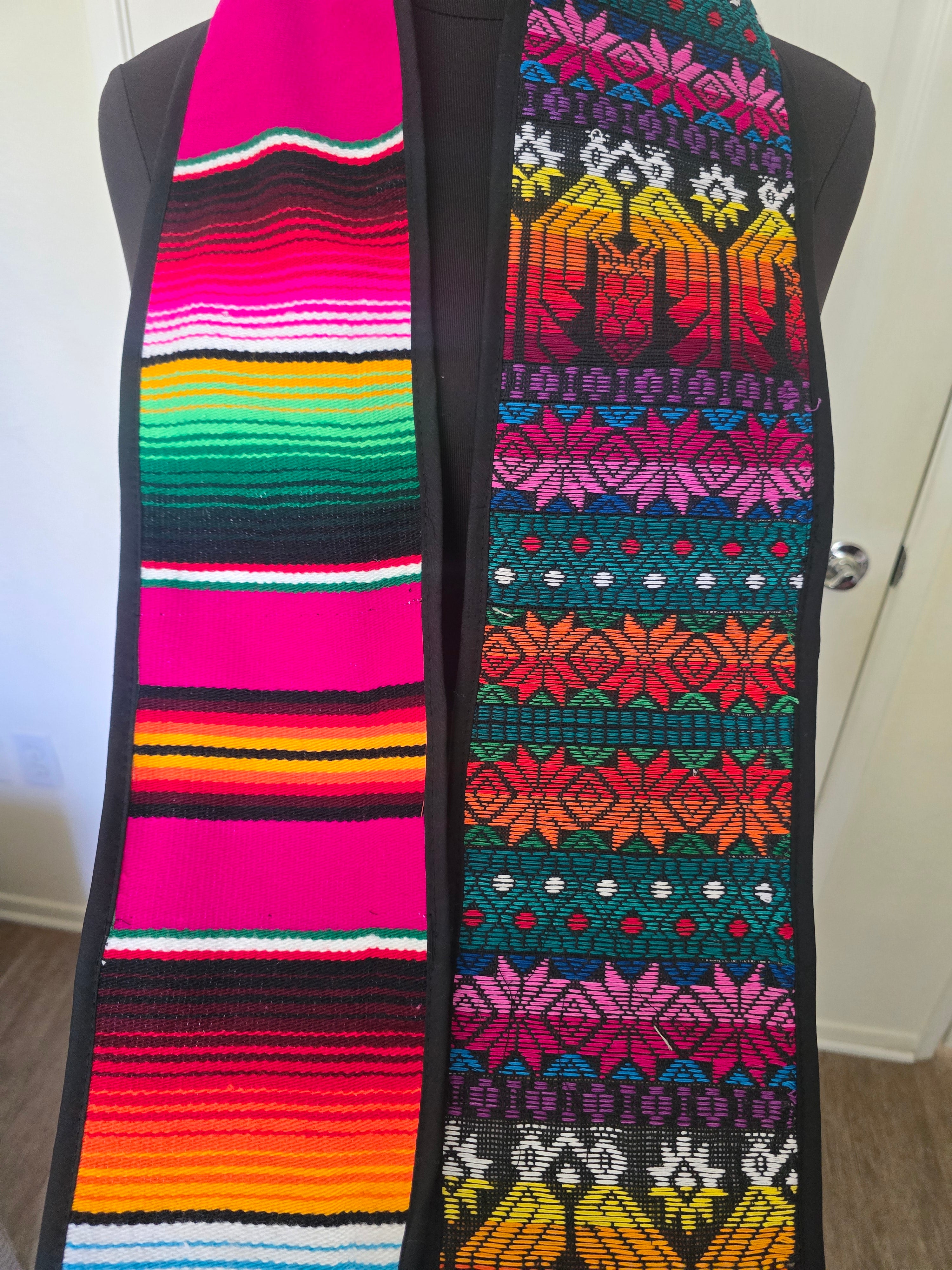 Celebrate your journey with a piece that honors the beauty of a multicultural identity. This graduation sash is a vibrant tribute to mixed heritage, seamlessly blending two iconic textile traditions into one elegant design.