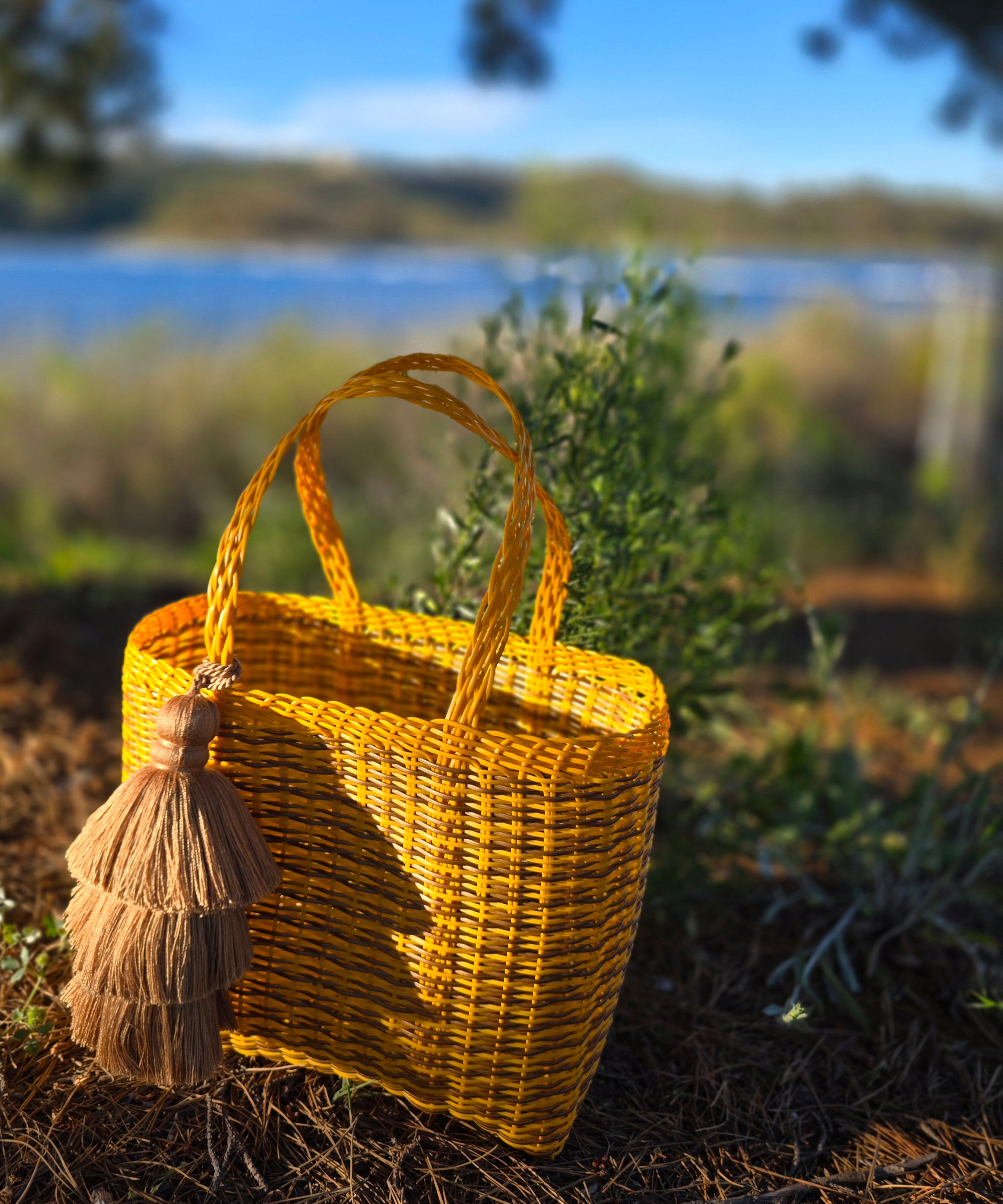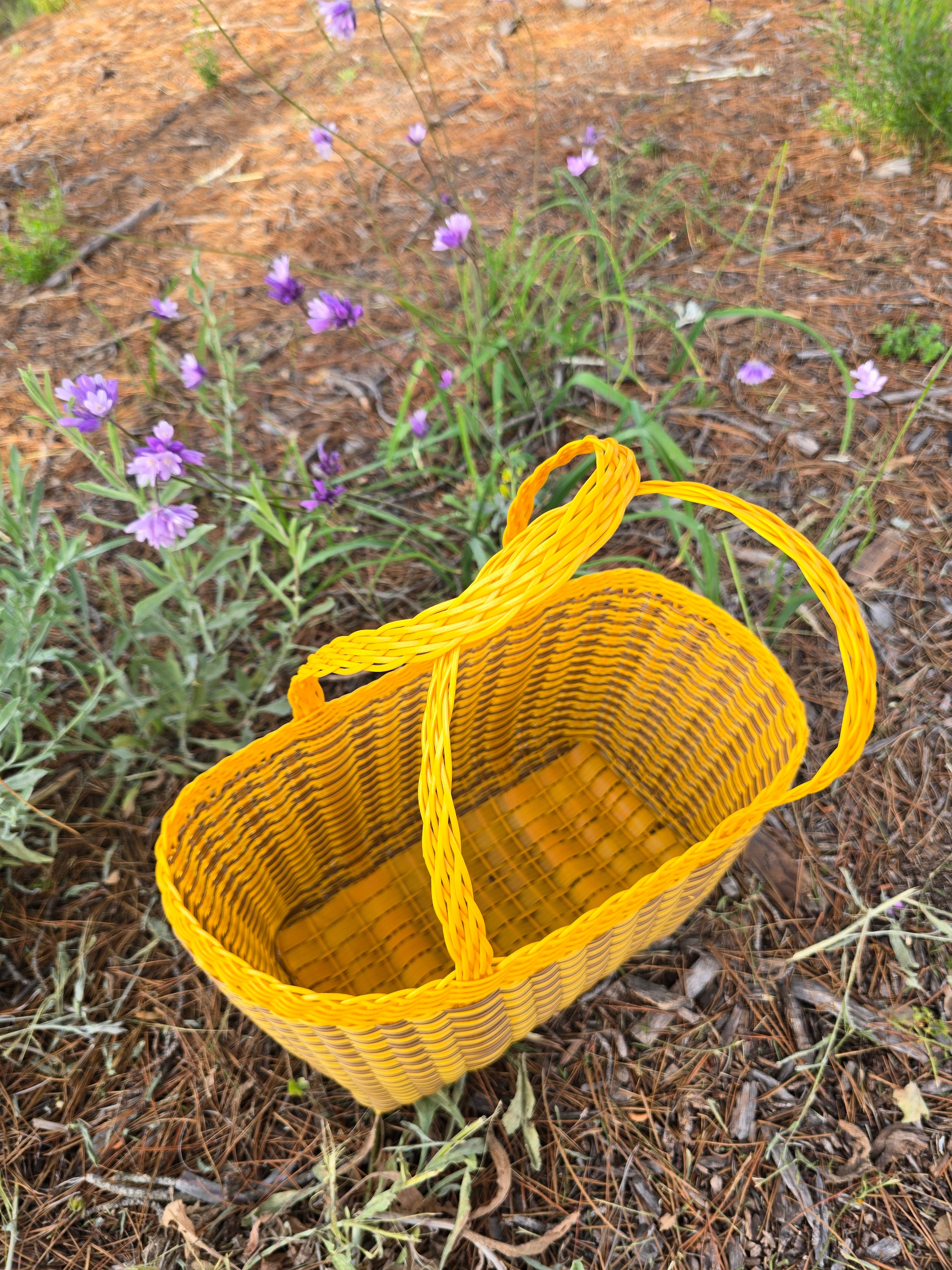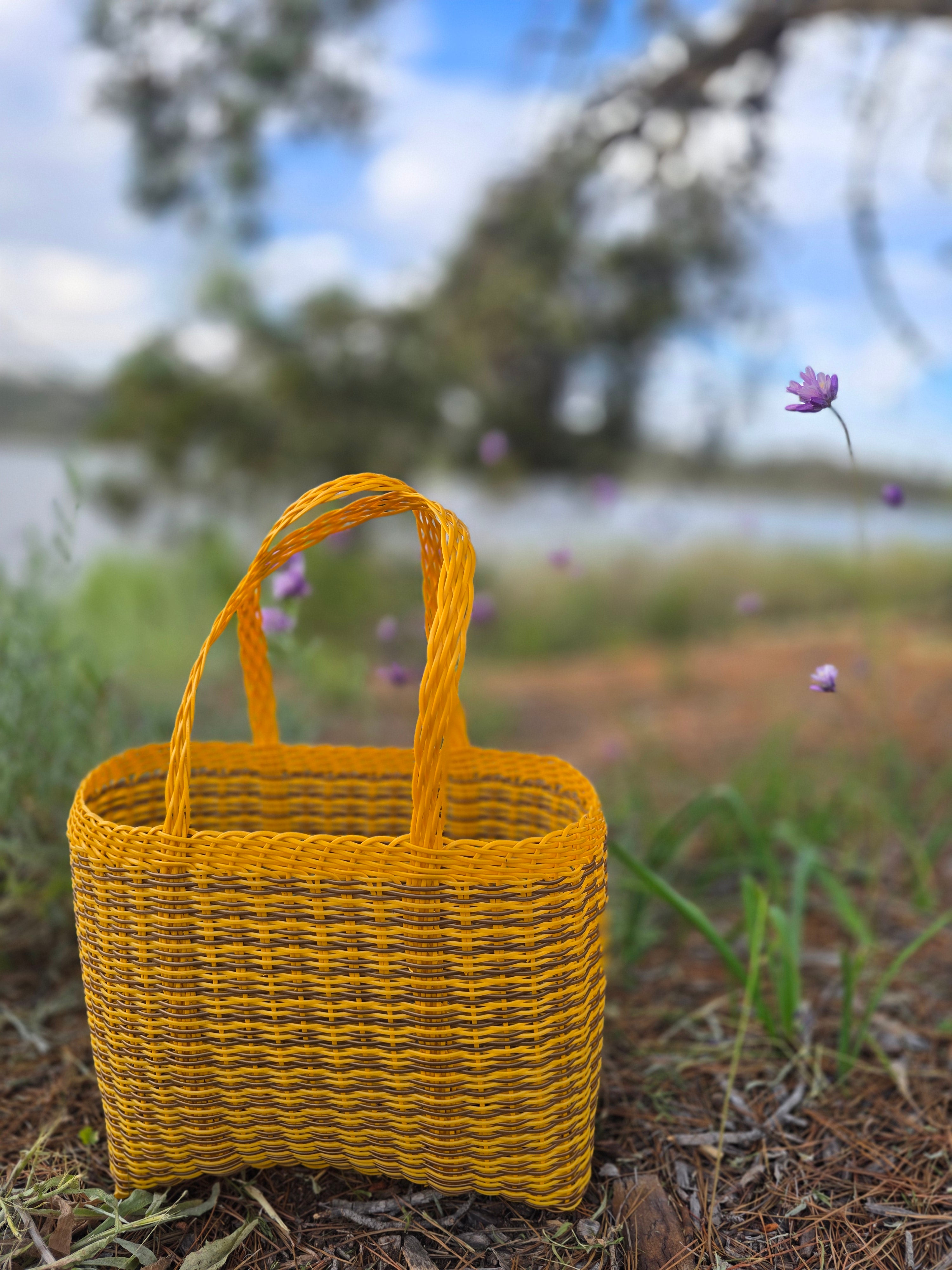 Bring a touch of sunshine to your errands with this mustard yellow and grey hand-woven basket. Crafted from durable recycled plastic by Guatemalan artisans, this tote is built for high-capacity use. Whether you are grocery shopping or attending kids' sports games, its very spacious design and heavy-weight capacity won't let you down. Easy to clean and fully washable, it’s a fresh statement piece for any occasion.
