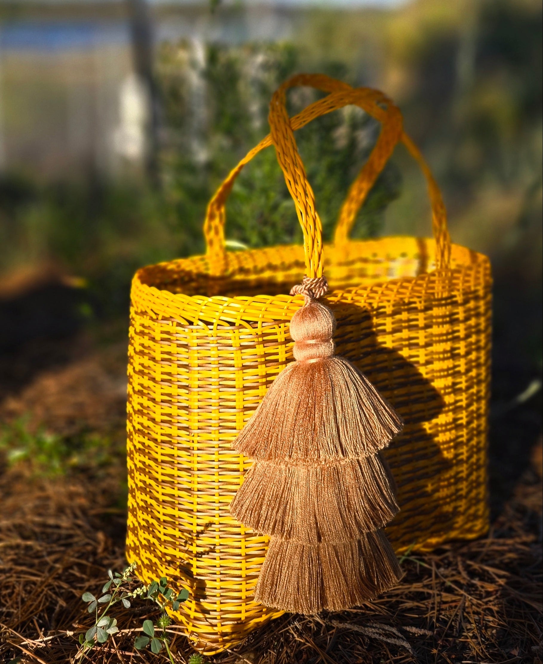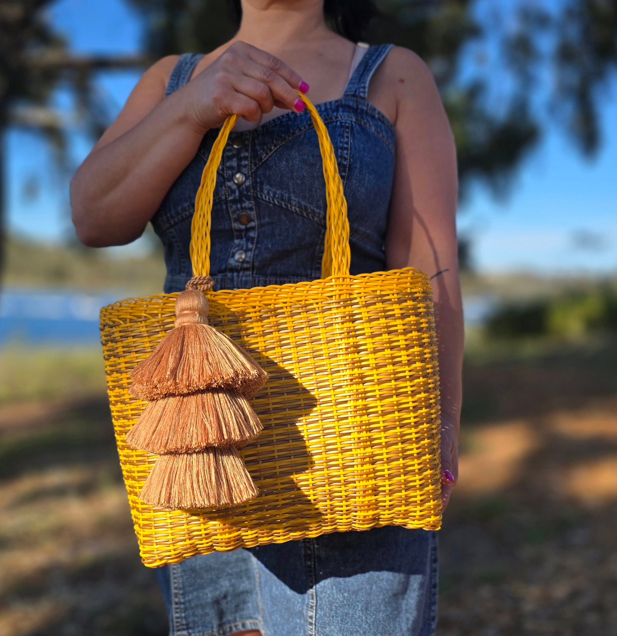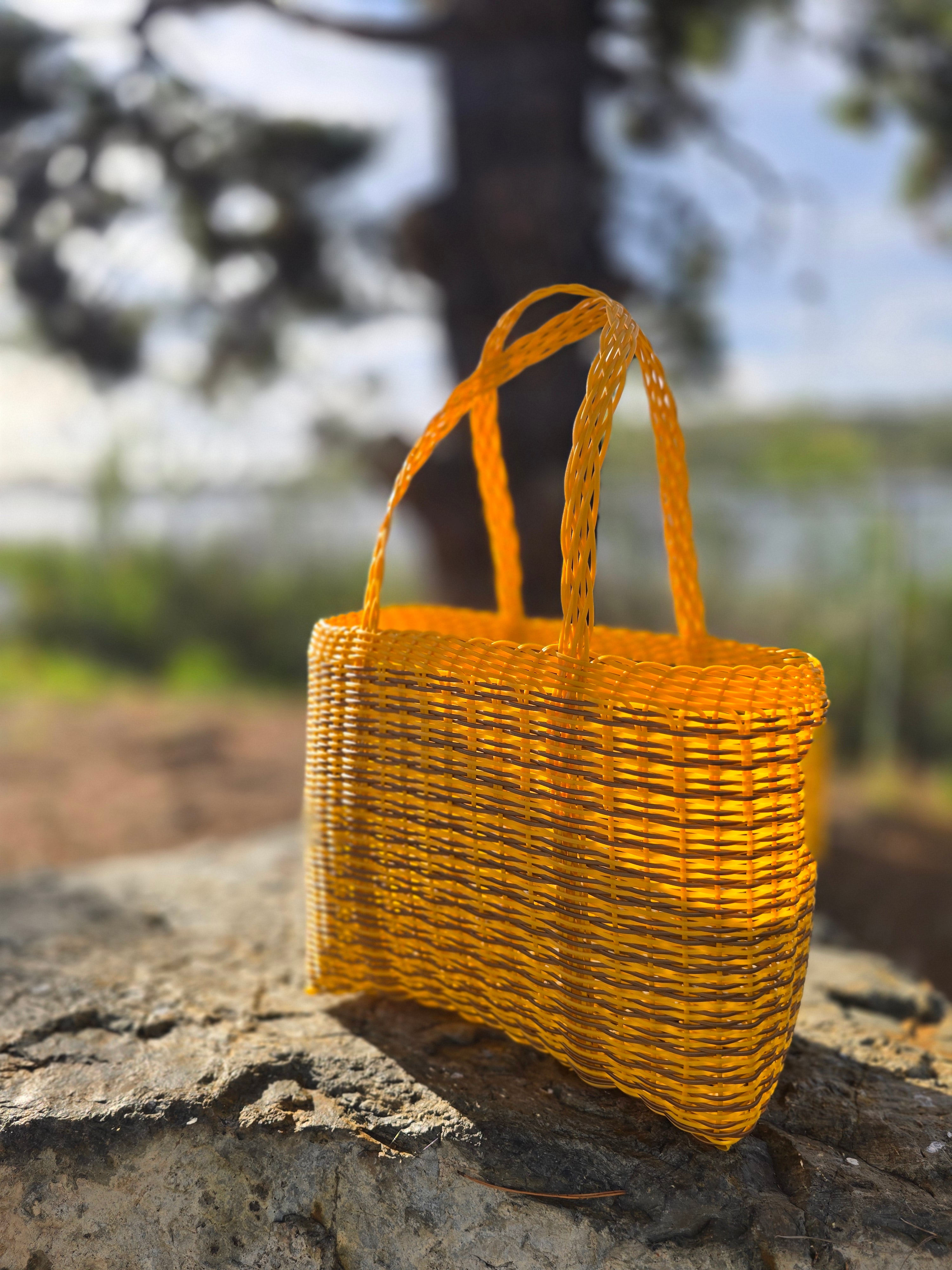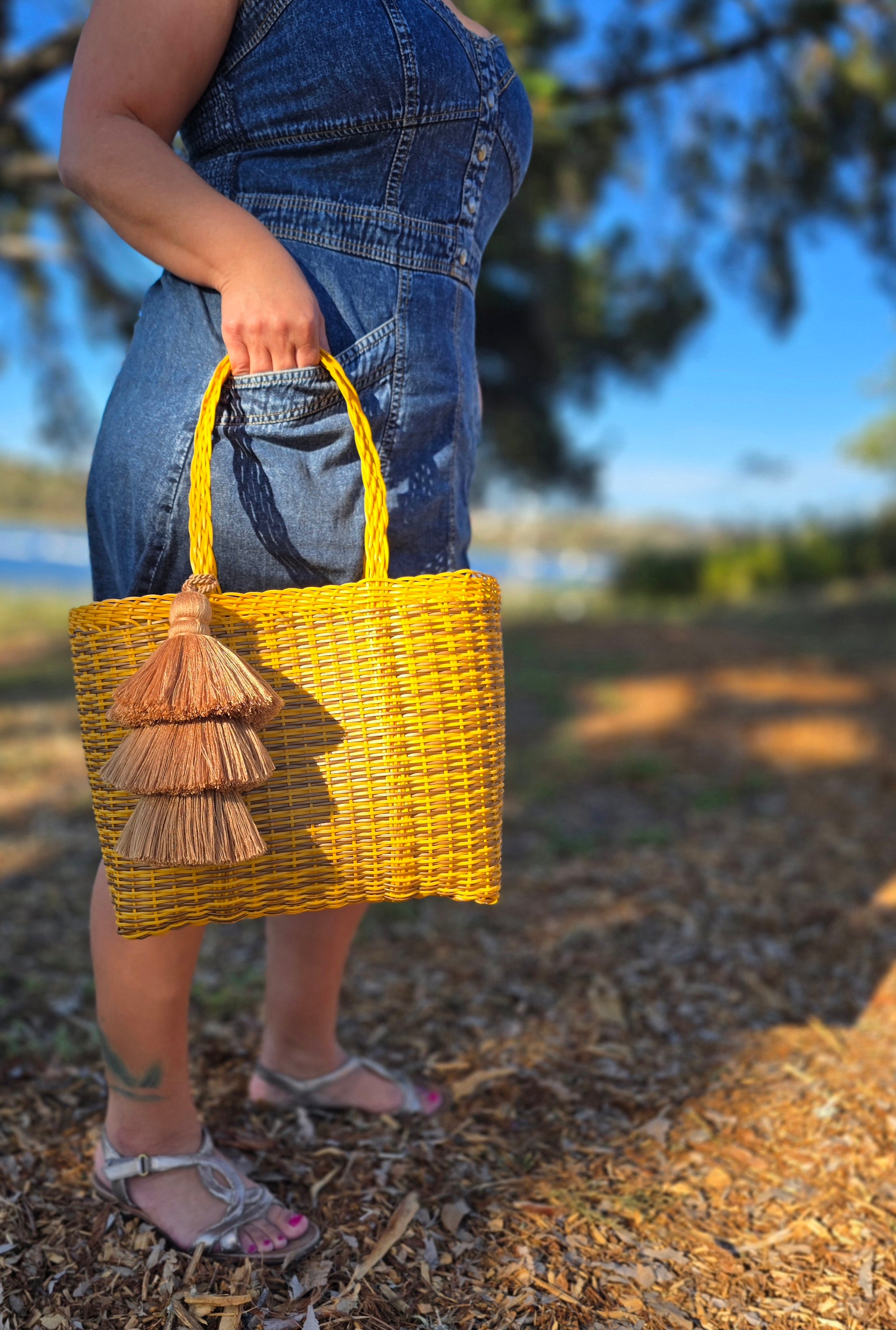 Bring a touch of sunshine to your errands with this mustard yellow and grey hand-woven basket. Crafted from durable recycled plastic by Guatemalan artisans, this tote is built for high-capacity use. Whether you are grocery shopping or attending kids' sports games, its very spacious design and heavy-weight capacity won't let you down. Easy to clean and fully washable, it’s a fresh statement piece for any occasion.