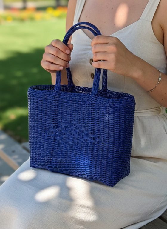 Elevate your daily routine with our striking royal blue plastic tote, a sophisticated accessory designed for modern versatility. This spacious azul rey bag seamlessly transitions from mercado trips to professional settings, accommodating everything from groceries to your laptop with ease. Crafted from durable, washable plastic, it resists wear while maintaining its rich jewel-tone finish. The structured design provides reliable support for heavy loads, while the refined silhouette adds polish to any ensemble. Perfect for the discerning individual who values both style and practicality, this everyday bag combines timeless elegance with functional excellence for work, shopping, and beyond.